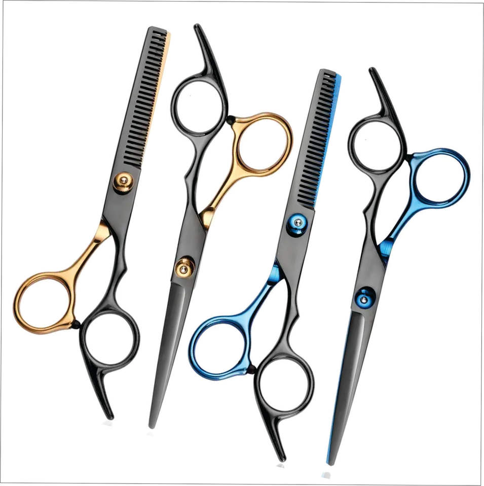 Ciseaux à cheveux en acier CNC, bleus, à pointe affûtée, plats, pour droitiers, ciseaux de barbier