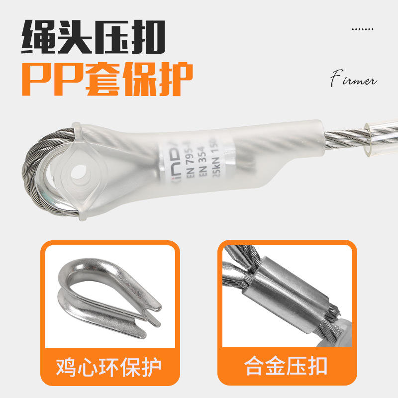 Point d'ancrage pour câble en acier 12 mm 100 cm 150 cm 200 cm pour opérations en haute altitude, sauvetage, travaux extérieurs et construction de réseaux électriques