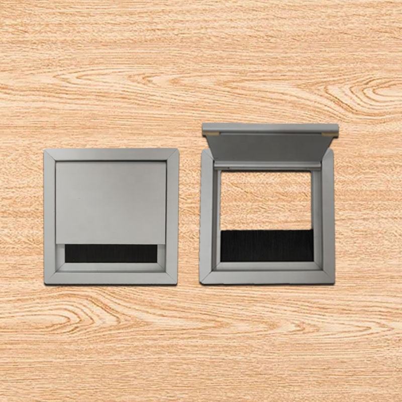 Boîte de gestion de câbles en acier avec couvercle rabattable à fermeture douce, passe-câbles pour prise murale