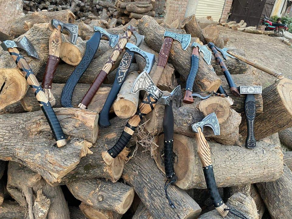 Steel Craft International Haches à mâchoires en acier Damas faites à la main sur mesure, 14 pièces, manche en bois de frêne, usage industriel, 4 3/4