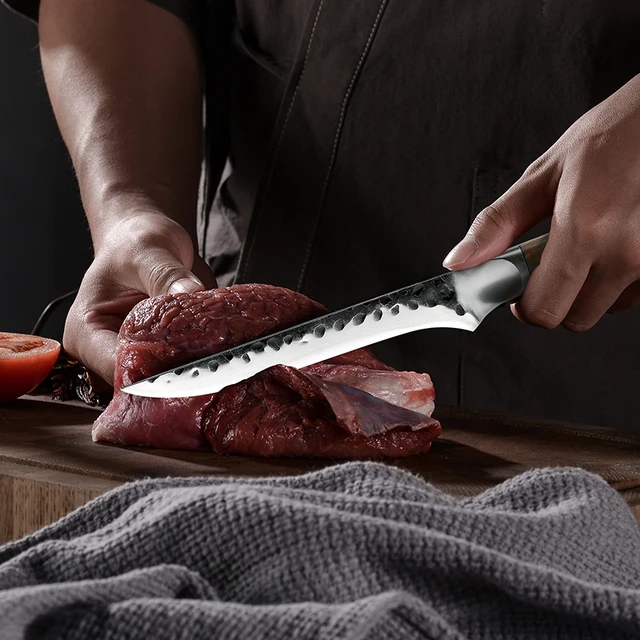 Couteau de chef artisanal international fait à la main en acier inoxydable couteau à filet de viande lame damas couteau de cuisine gaine vente en gros