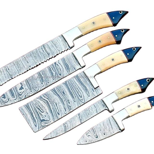 Ensemble de couteaux de chef multifonctionnels écologiques à manche en bois Steel Craft International Professional 5 pièces en acier inoxydable