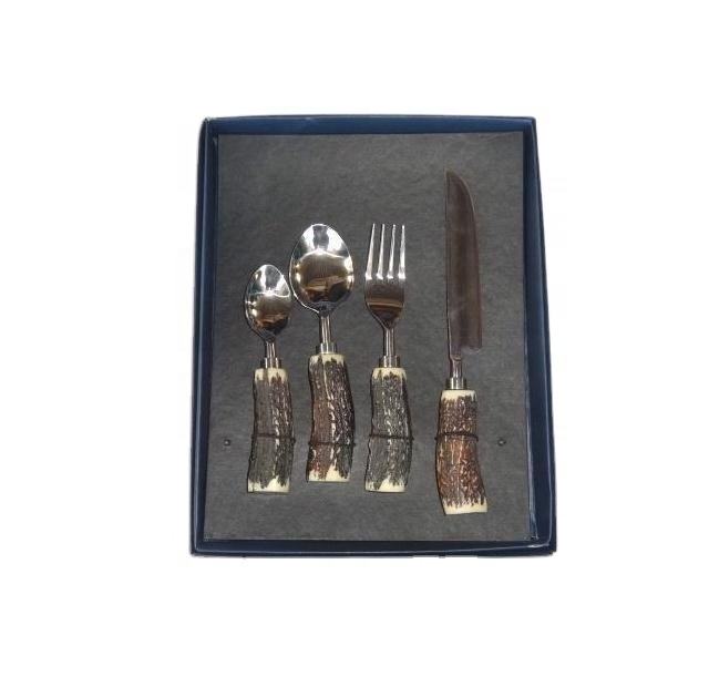 Service de couverts de table en acier inoxydable, 4 pièces, avec manche en corne brute, poli miroir, service de table