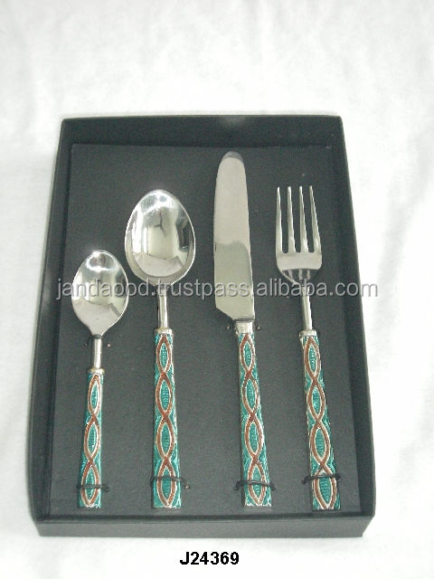 Ensemble de couverts en acier de haute qualité avec couleur de peinture émaillée peut être fait sur demande des acheteurs ensemble de dîner de 4 pièces de vaisselle