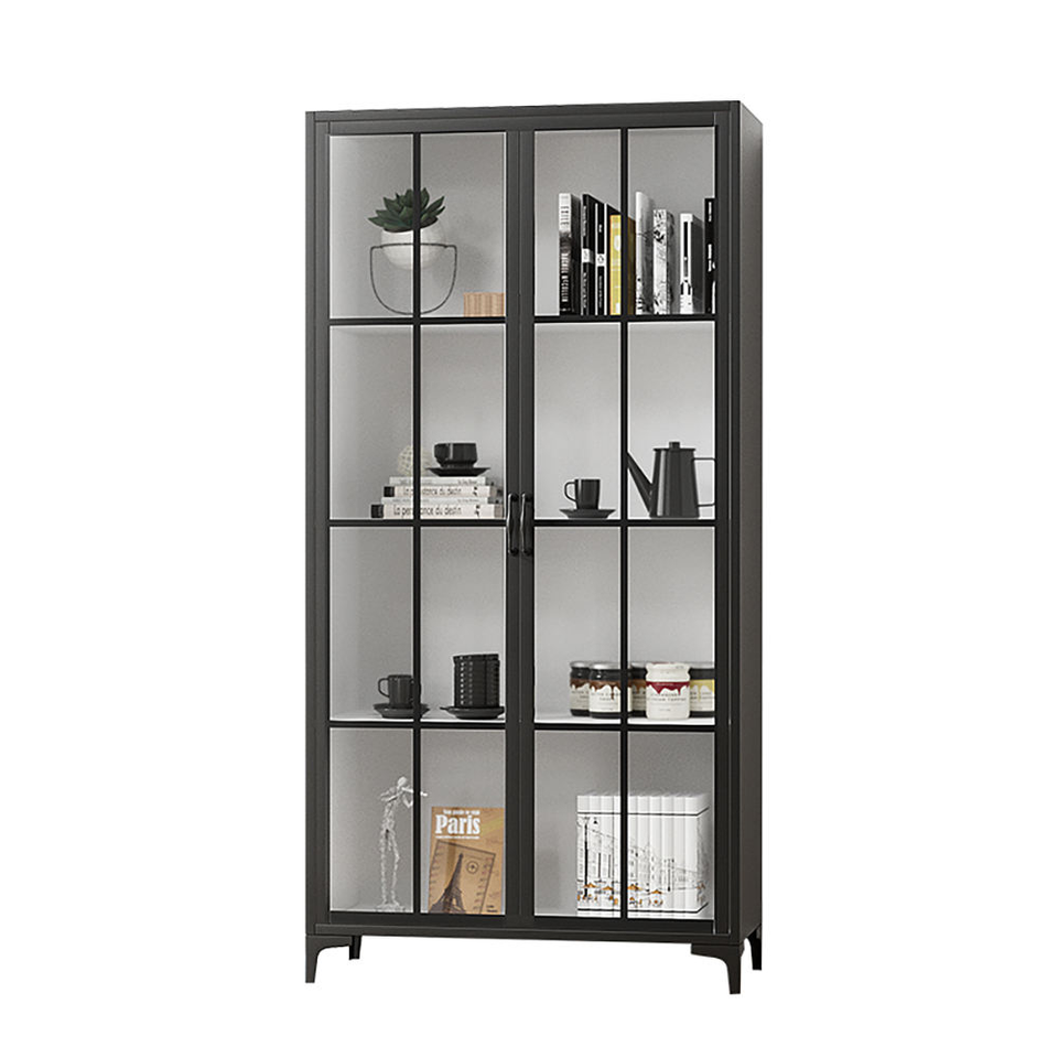 Armoire de présentation en acier avec 2 portes vitrées, casier de balcon, armoire de rangement en métal pour livres, bibliothèque de salon avec pieds