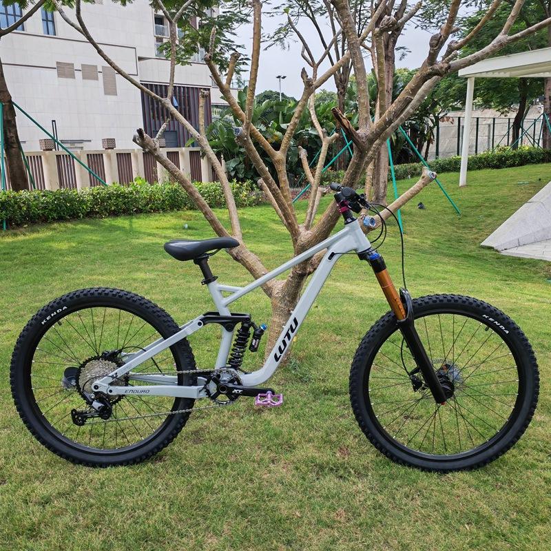 Vélo de montagne à cadre en acier et suspension souple avec freins à disque 12 vitesses, roues de 27,5/29 pouces pour la descente hors route, pédales ordinaires