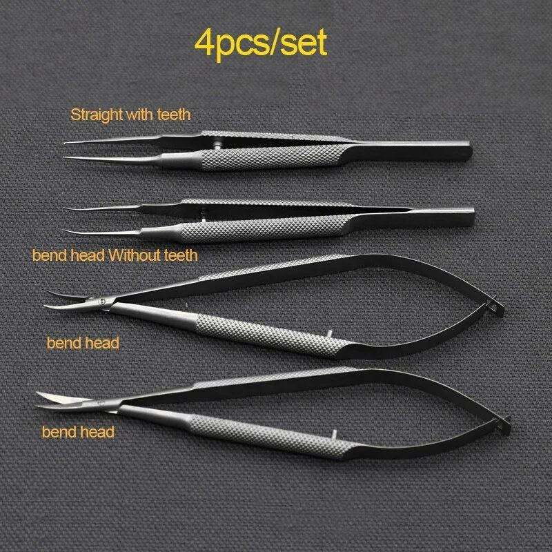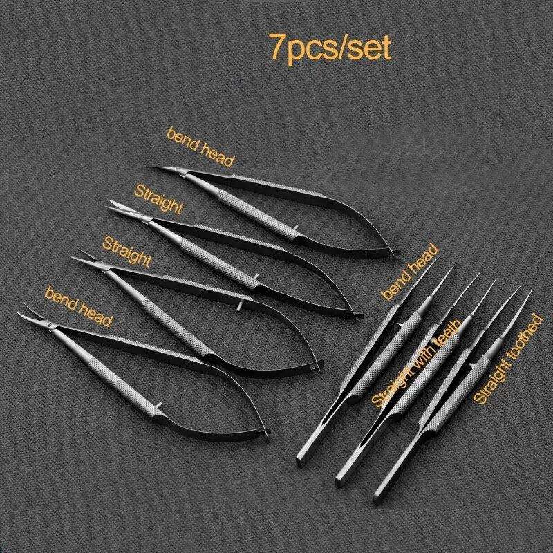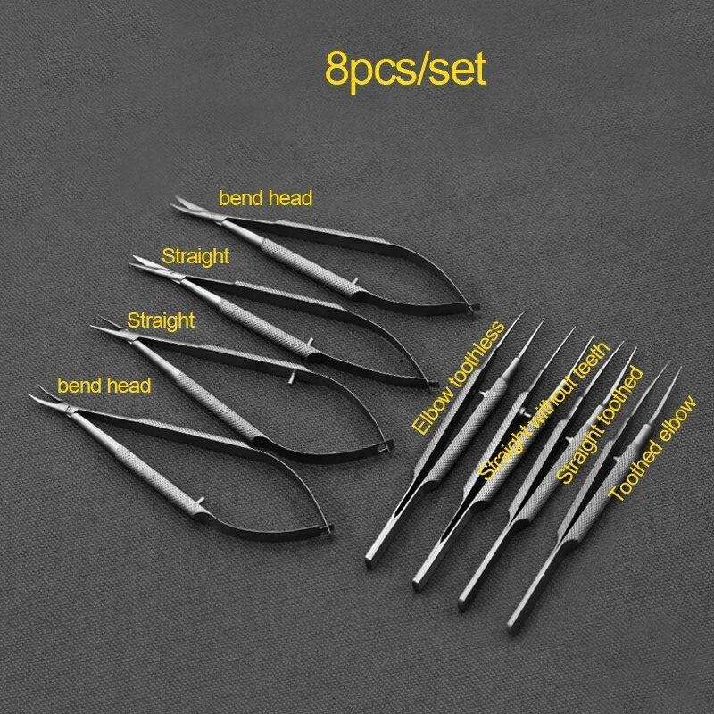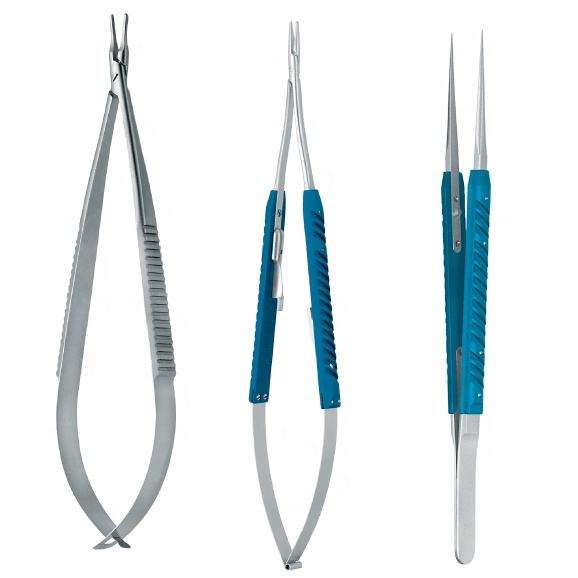 Ensemble d'instruments microchirurgicaux ophtalmiques en acier : porte-aiguilles/ciseaux/pincettes, manuel, certifié CE, certifié ISO13485