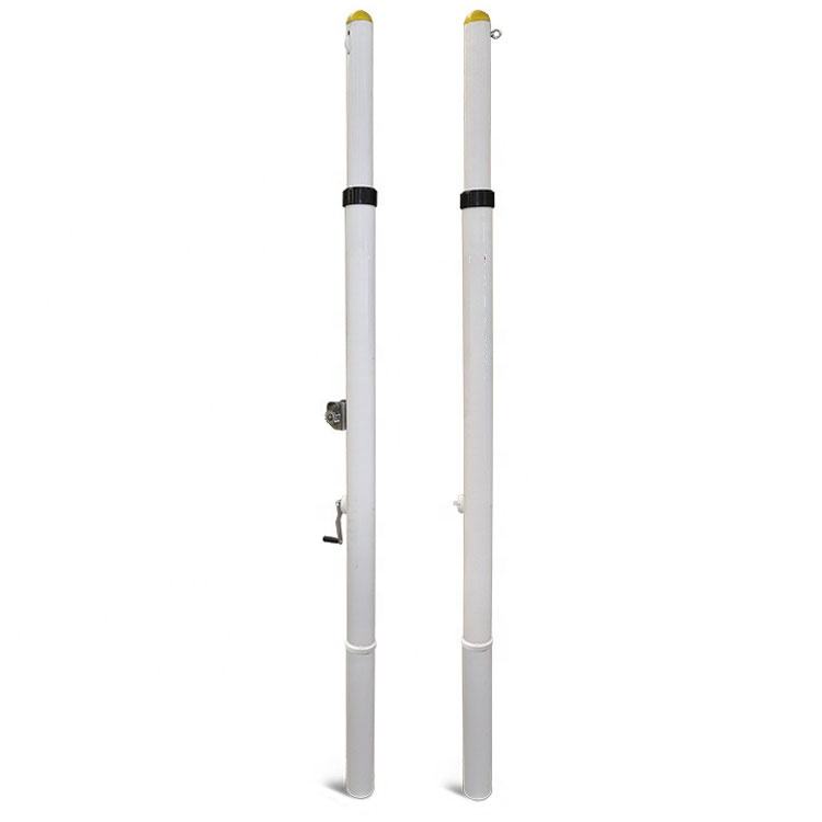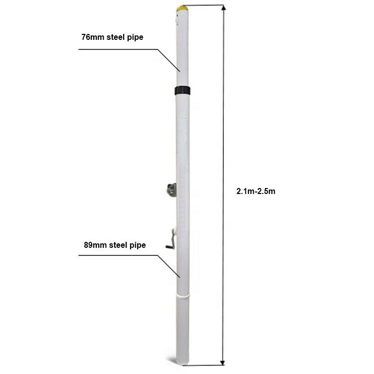 Taille des poteaux de volleyball:Le tuyau intérieur a un diamètre de 76 mm, le tuyau extérieur a un diamètre de 89 mm.