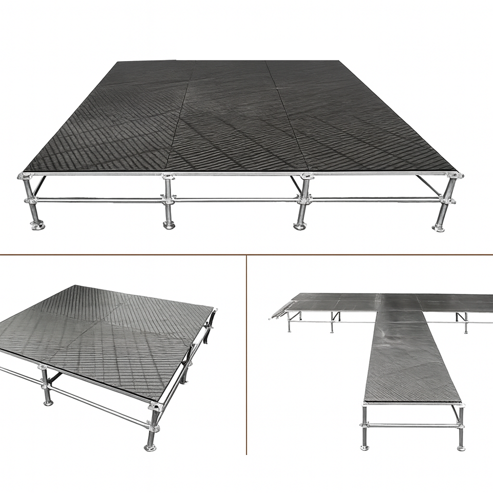 Système de scène modulaire en acier Ringlock avec système de verrouillage à rosette, plateforme antidérapante pour événements et extension de piste pour les grands événements en plein air