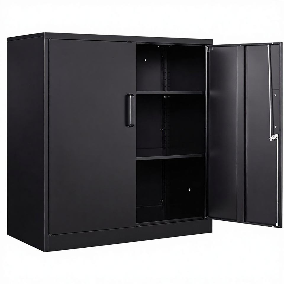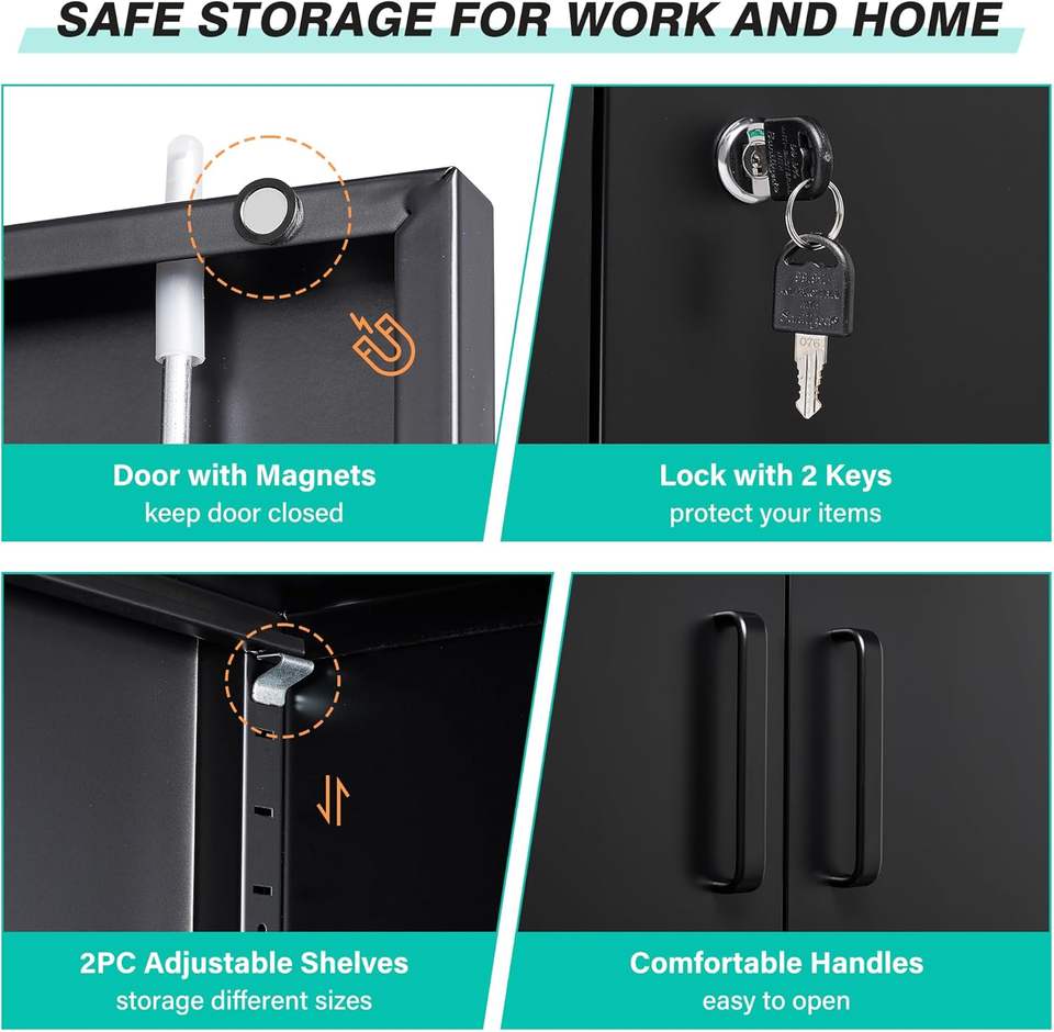 Armoire de rangement en acier avec 2 étagères réglables, serrure à clé, fermeture magnétique pour le bureau et la cuisine
