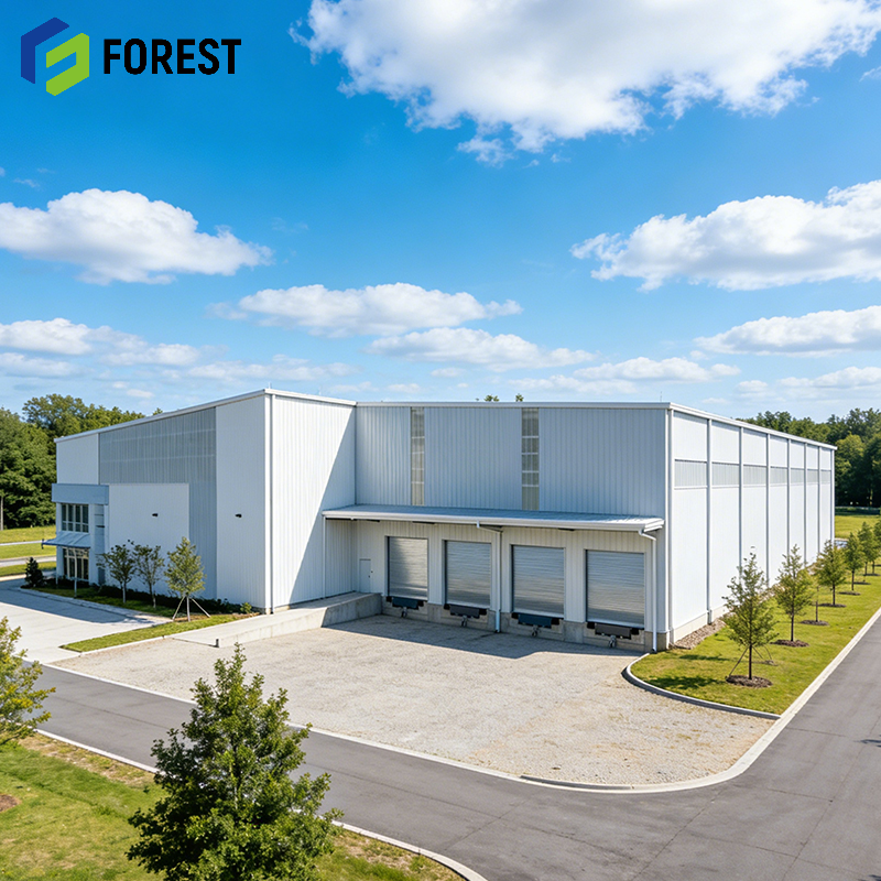 Atelier à structure métallique à longue portée, bâtiment hospitalier et de bureaux, protection de sécurité, résistant aux intempéries, haute résistance, insonorisé