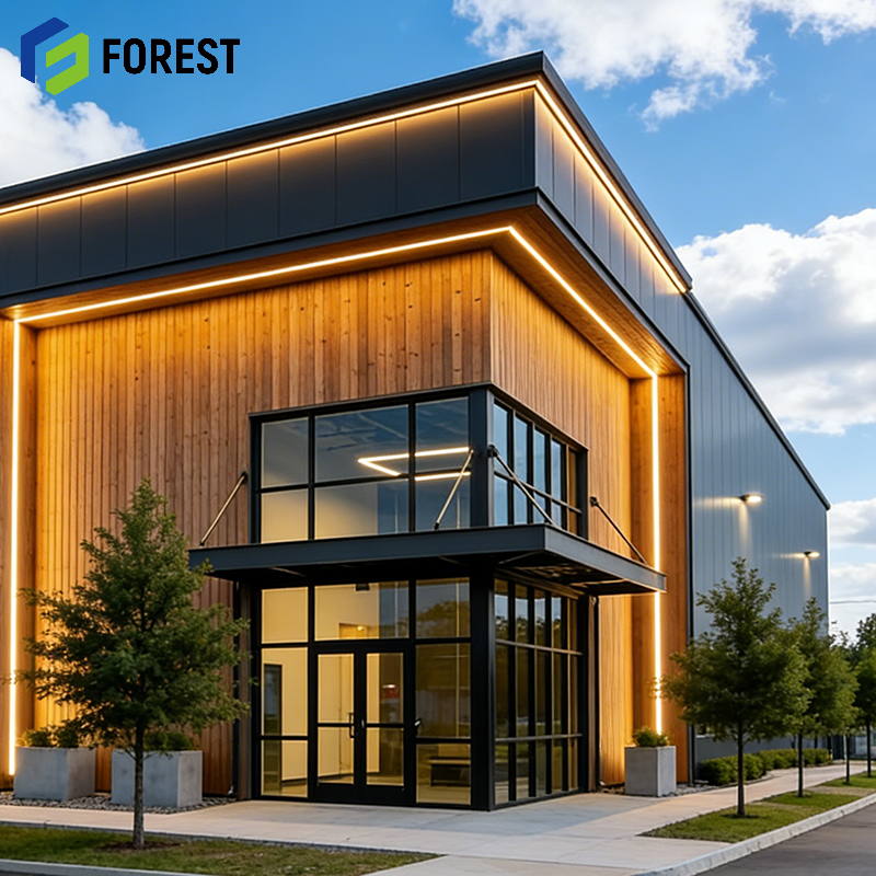 Atelier en structure métallique pour centre de distribution, préfabriqué, économique, résistant aux intempéries, insonorisé et résistant aux chocs atmosphériques
