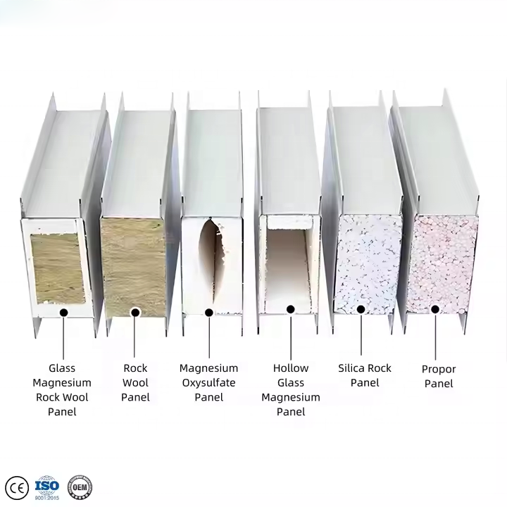 Panneau sandwich mural de cloison détachable en acier préfabriqué, léger, en mousse EPS, structure en acier, couleur acier