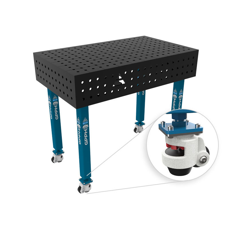 SteelEco GPPH 1x0.6m wheeled welding bench, 8mm thick, 16mm holes, 50x50mm grid