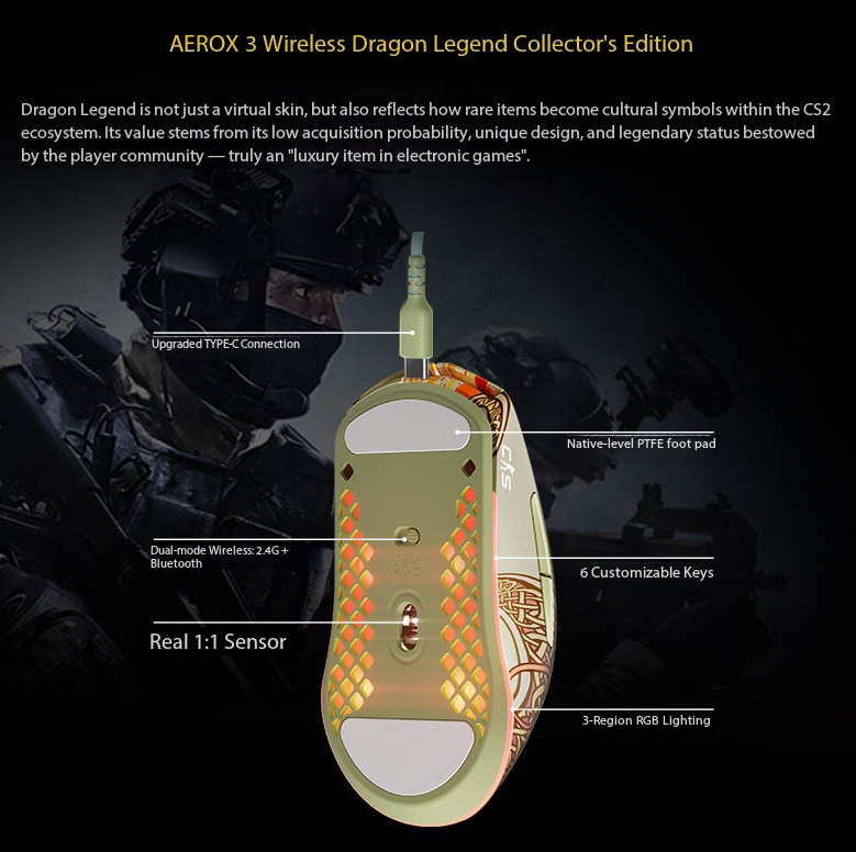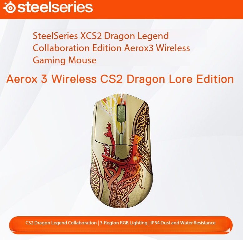 Souris sans fil SteelSeries XCS2 Dragon Lore WL Aerox 3 WL, collaboration Dragon Legend
