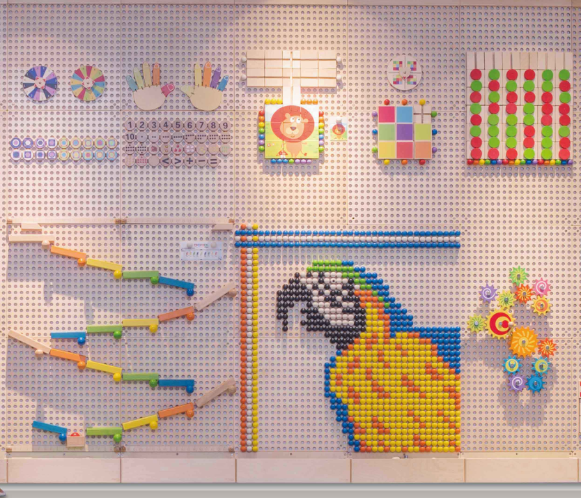 Centre d'activités murale en briques, éléments de type Rubik's Cube, enseigne la physique simple, la logique, la réaction en chaîne, jeu pour les enfants de 0 à 6 ans