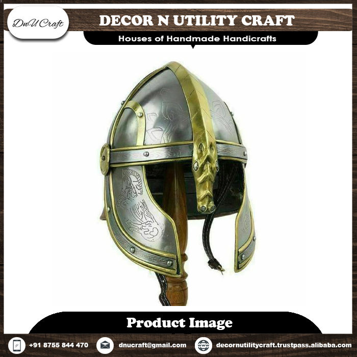 Entrez dans l'histoire : Casques médiévaux en acier et en laiton gravés à la main - Objets d'art de haute qualité personnalisables à bon prix
