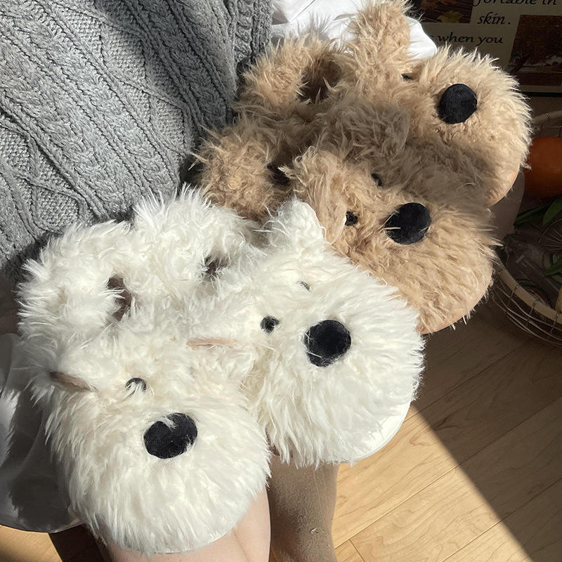 Chaussons d'intérieur antidérapants en fourrure pour femmes, style chiot mignon et moelleux, par StepGrace
