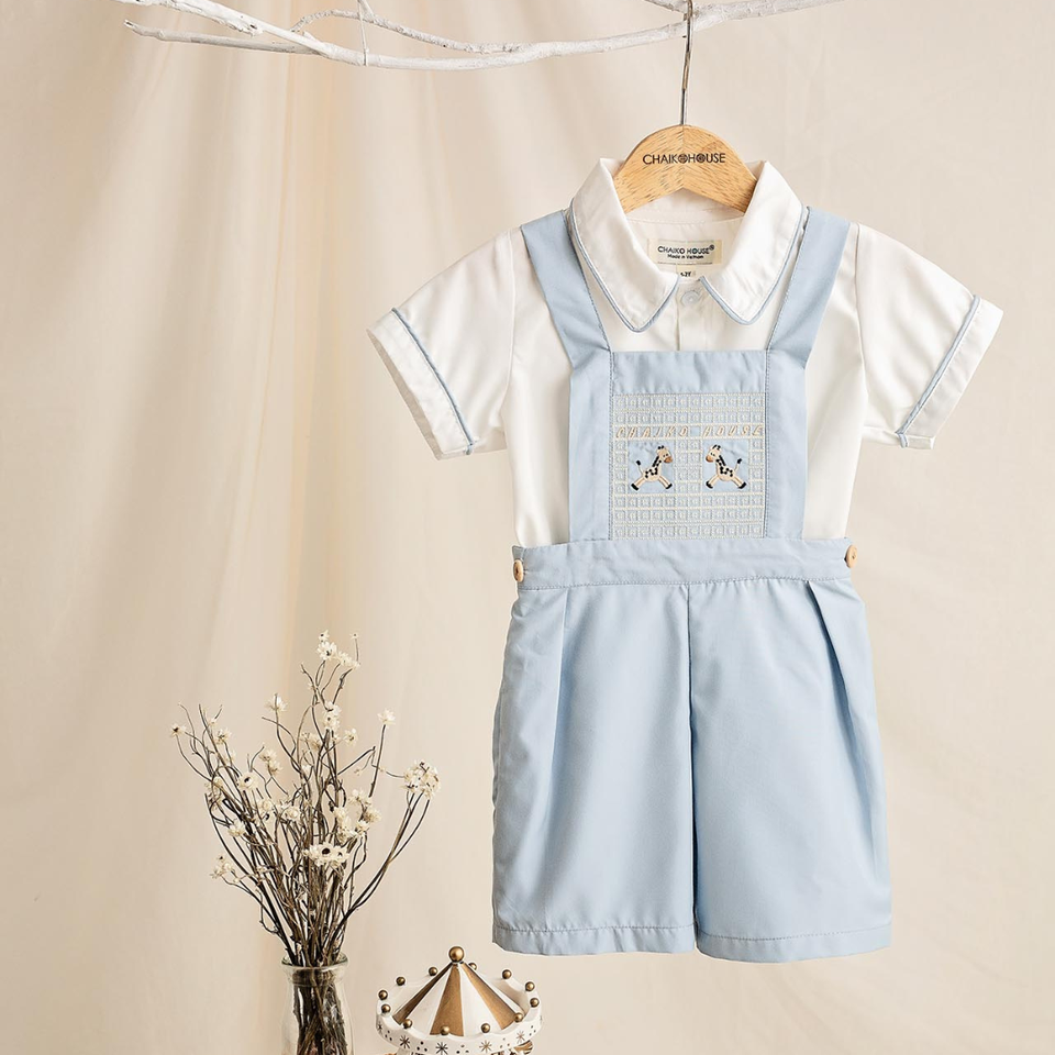 Design:2 pieces, short sleeves shirt, short coverall