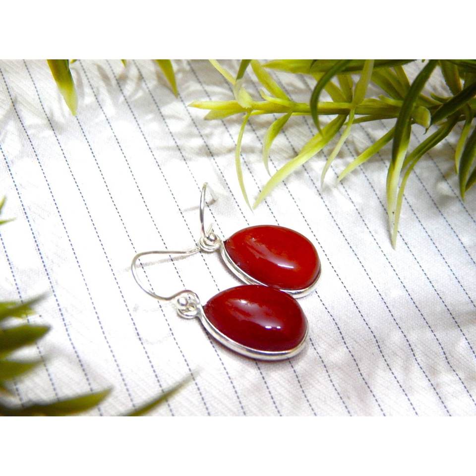 Sterling 925 Silver Bohemian Earrings with Red Cabochon Agate Handmade Jewelry for Women Perfect Gift for Her