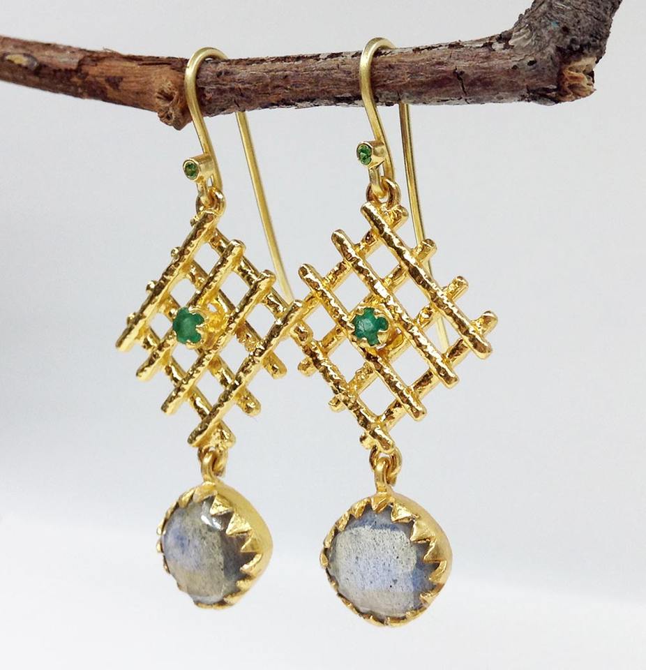Boucles d'oreilles plaquées en or, argent Sterling 925, perles bleues, topaze, Apatite, Labradorite, émeraude, Tourmaline rose, pierre de lune blanche