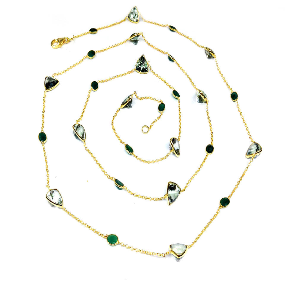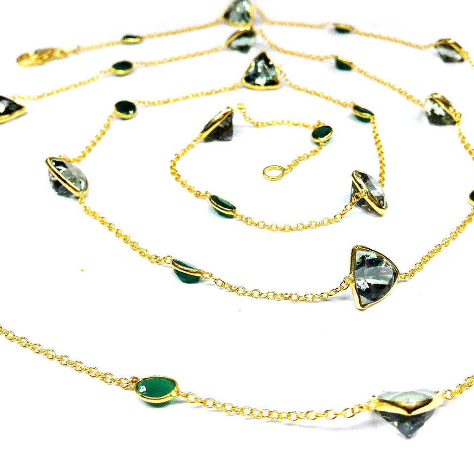 Argent sterling 925 Améthyste vert émeraude Pierres précieuses Les dames portent des colliers à longue chaîne réglables à la mode