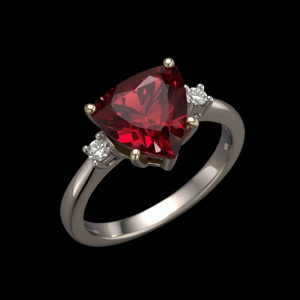Sterling Silver 925 Trillion Cut Garnet Engagement Ring for Women with Side Diamonds Fine Jewelry