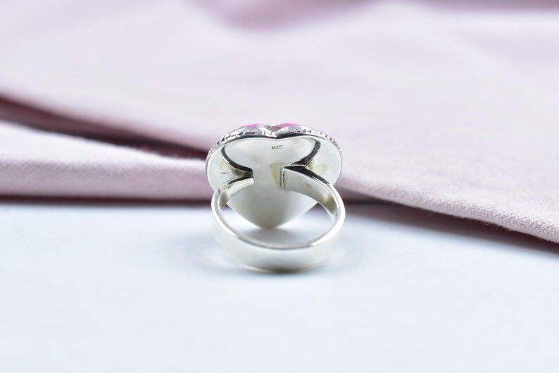 Bague réglable en argent sterling avec pierre naturelle coupe ovale lunette réglage barbe à papa Dahlia design floral fait à la main pour mariage