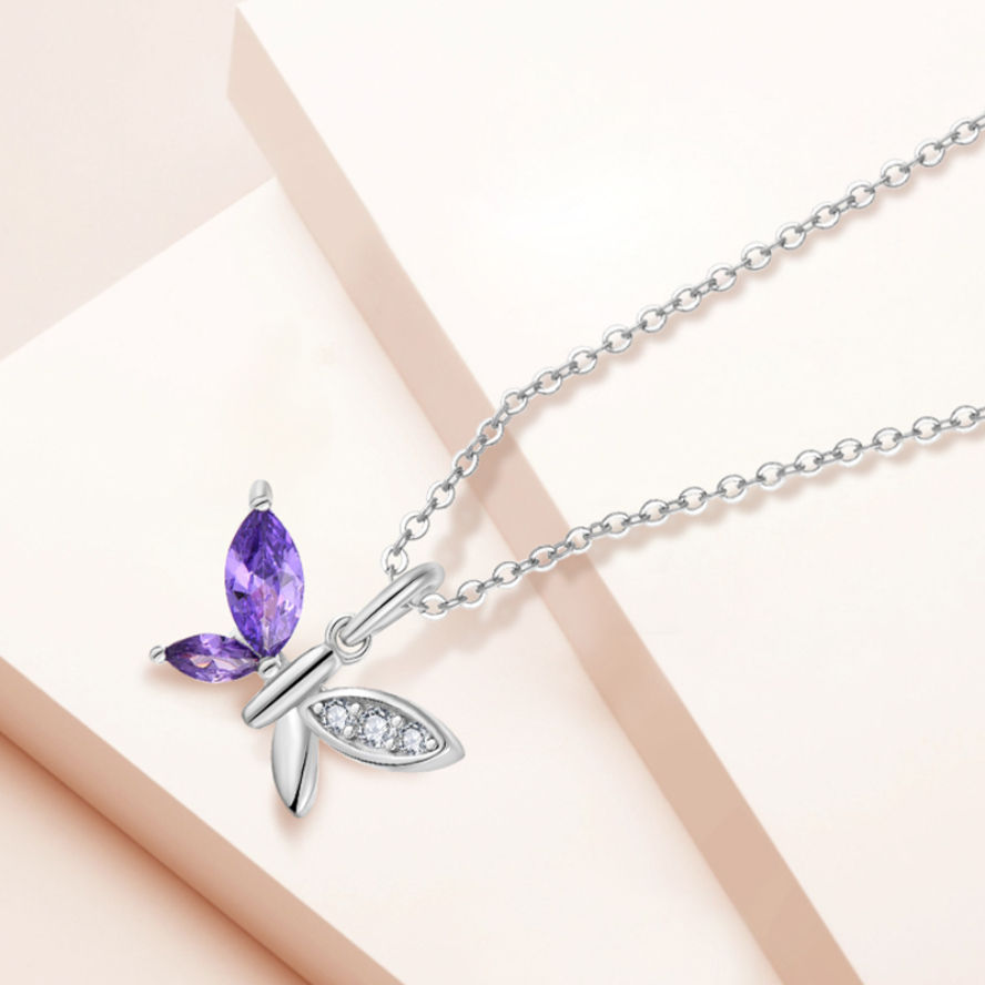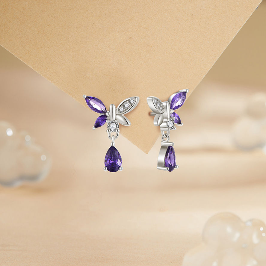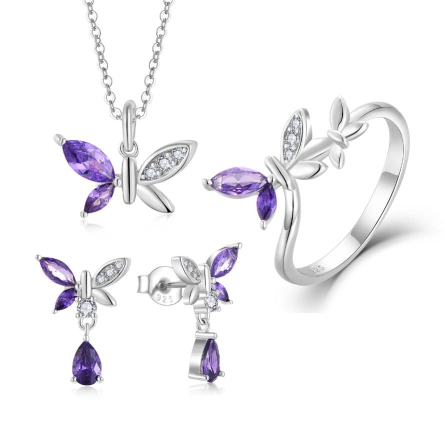 Ensemble de bijoux en argent sterling avec papillon, plaqué rhodium, améthyste violette, zircone cubique, argent 925, comme les ensembles de bijoux de créateurs originaux