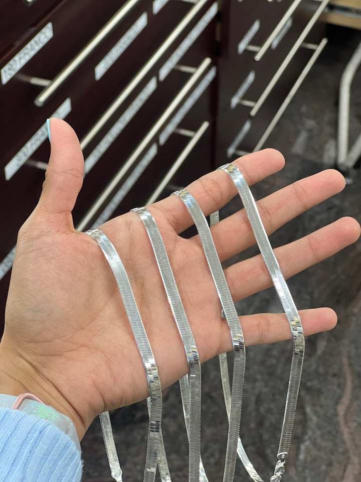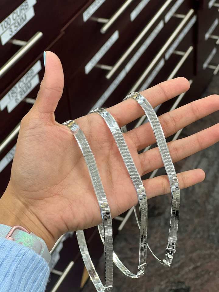 Collier en argent sterling à chaîne en chevrons, disponible en plusieurs longueurs de 16 à 24