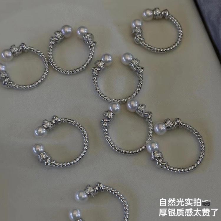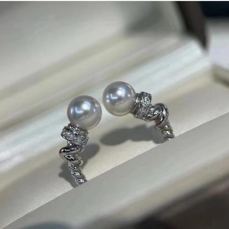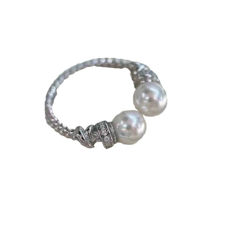 Bague en argent sterling de style médiéval à double perles torsadées, perles d'eau douce fortes et brillantes de 5 à 6 mm, presque parfaites