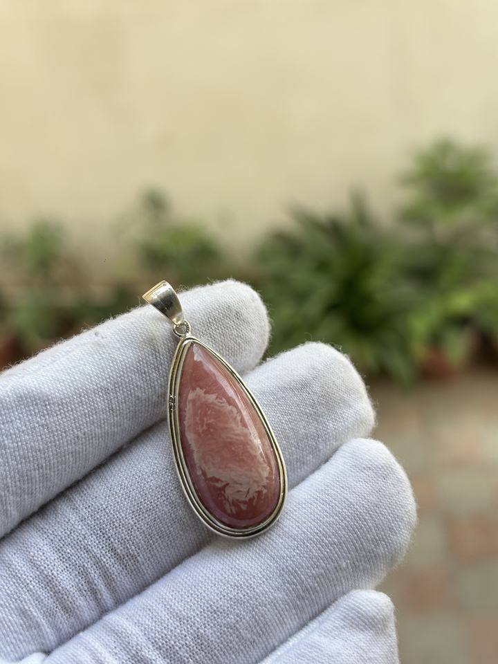 Bague en argent sterling avec rhodochrosite, forme poire, vintage, classique, plaquée or, qualité 3A, bijoux de haute qualité en gros