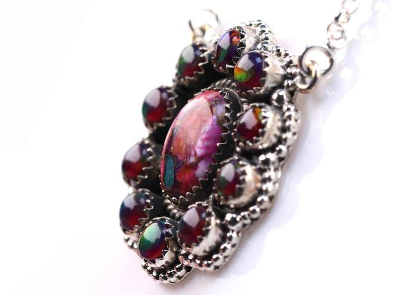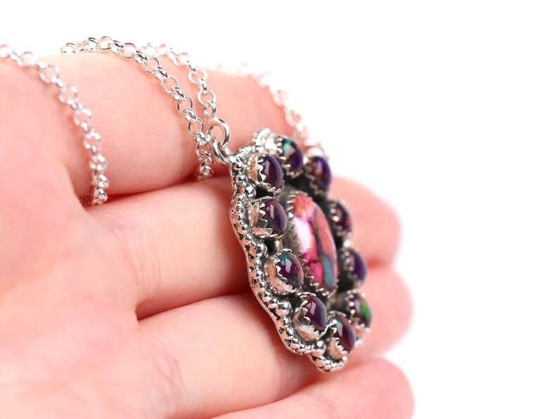 Sterling Silver Southwestern Necklace Pink Spiny Oyster Opal Jewelry Artisan One of a Kind Necklace with Chain