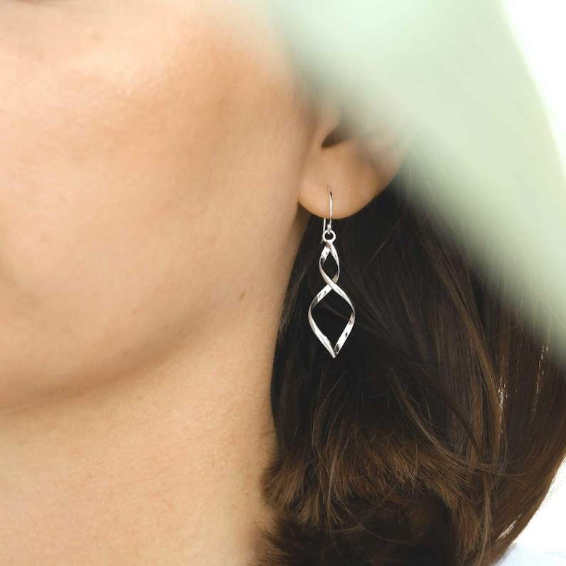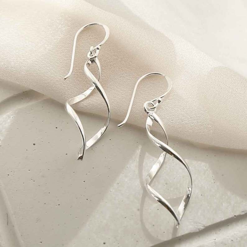 Handmade 925 Sterling Silver Dangly Earrings Unique Twist Design with Diamond and Pearl for Weddings and Parties