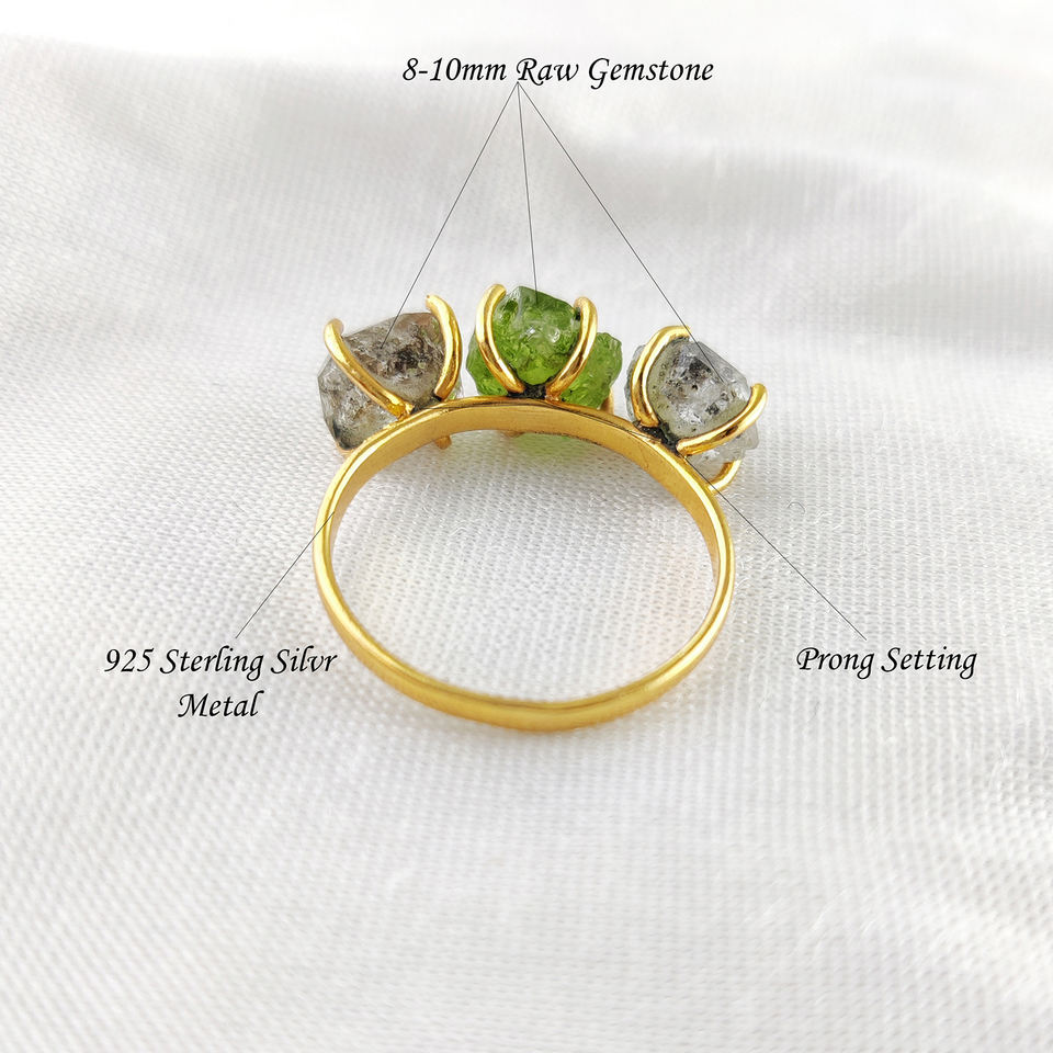 Sterling Silver Wholesale Bulk Quantity Gold Vermeil Original Herkimer Diamond Emerald Three Gemstone Claw Fine Birthstone Ring