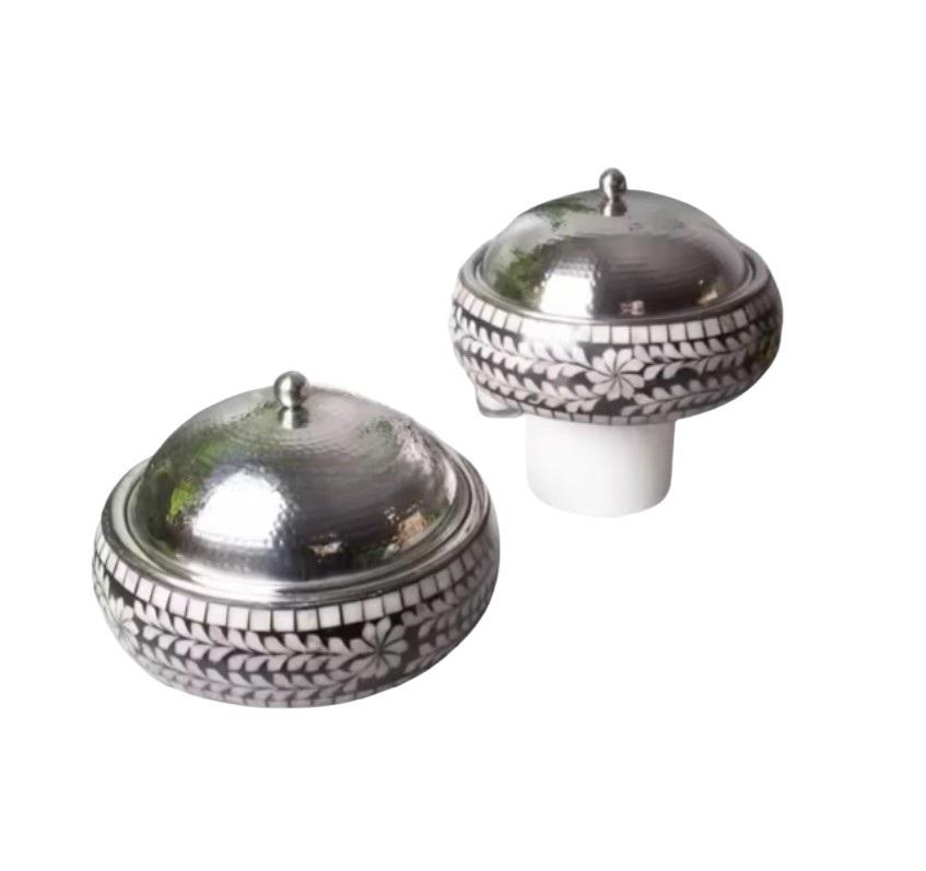 Réchauffeur de nourriture pour hôtel de forme ronde en émail pour le service de dessus de table Réchauffeur de nourriture en métal isolé