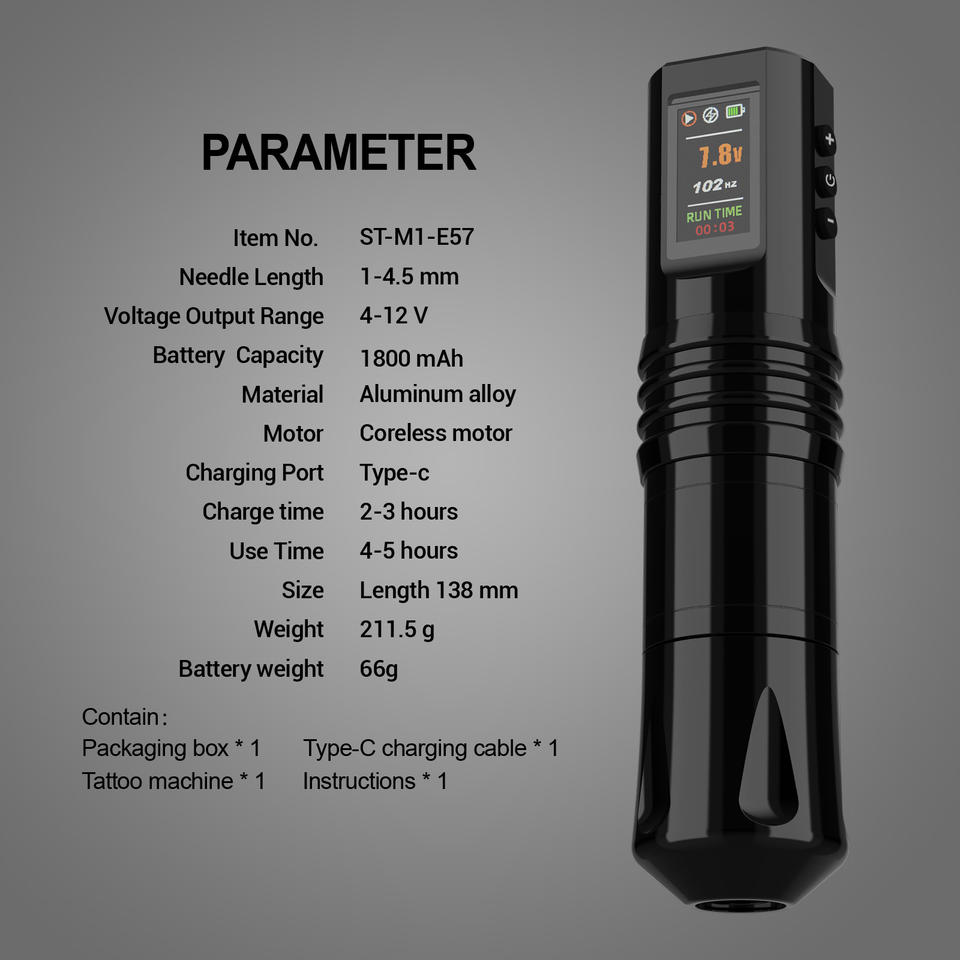 Stigma E57 Stylo à tatouer Machine à tatouer Affichage couleur Design classique Prise en main confortable Stylo à tatouer sans fil