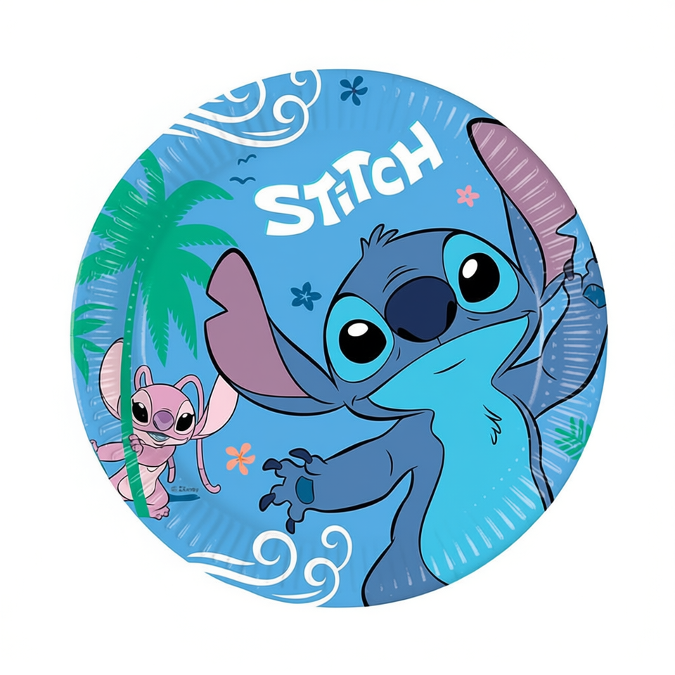 Assiettes jetables en papier Stitch 23 cm, 8 pièces, vaisselle pour fête d'enfants, fournitures pour anniversaire d'enfants
