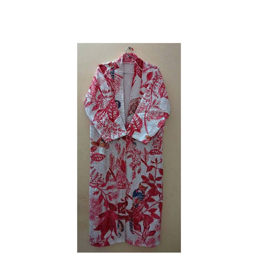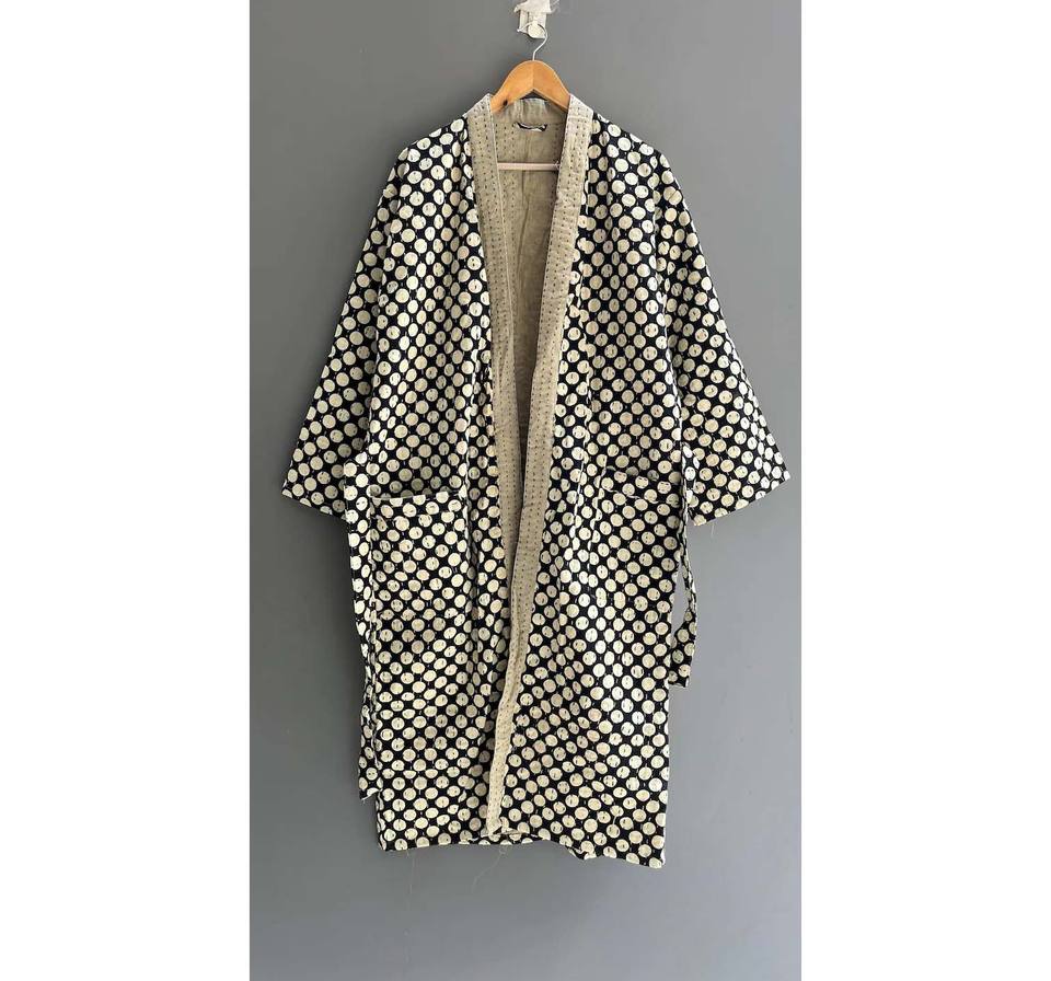 Hand Block Printed Cotton Kantha Kimono Summer Hand-Stitched Summer Made with Natural Dyes