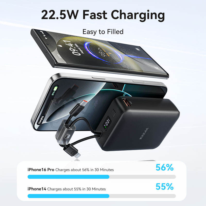 Haute Capacité, Charge rapide, Avec câble, PortableType