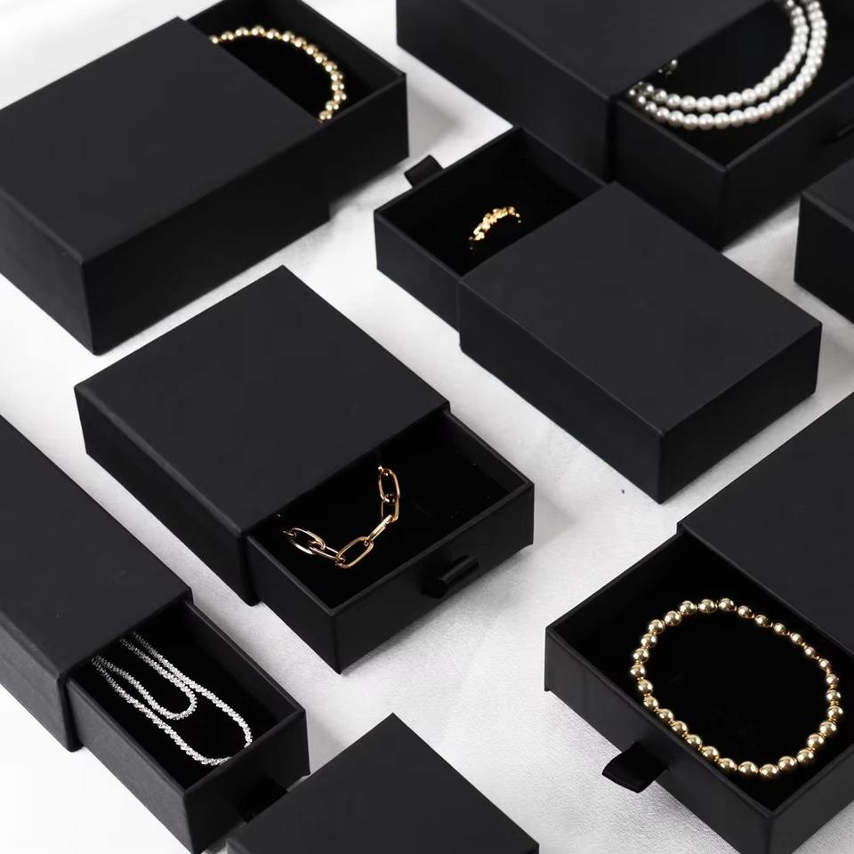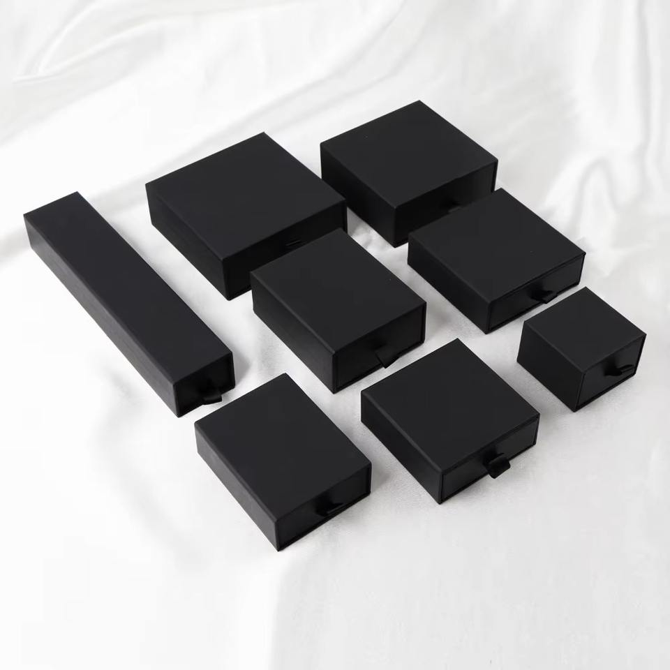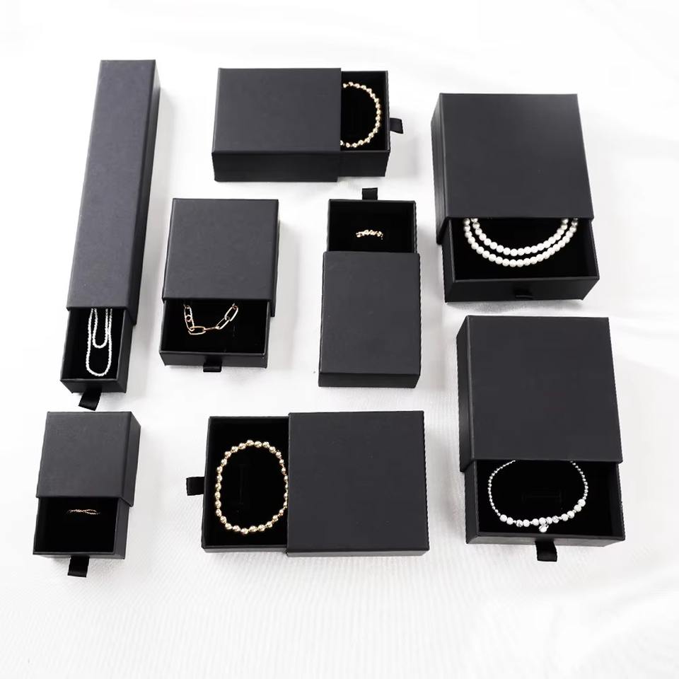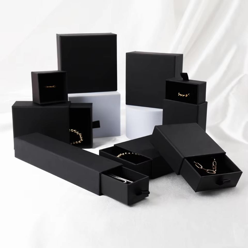 Tiroir en carton à bijoux coulissant pour hommes en stock pas cher Ajouter logo Petite boîte en papier noir Emballage pour bijoux