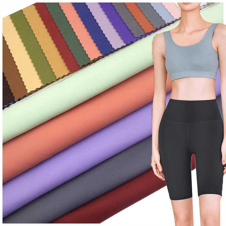 Stock couleurs complet terne 26% spandex 74% polyamide double face sans couture stretch haute densité tissu de sport pour leggings