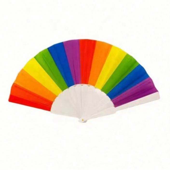 Éventail pliant en tissu côtelé plastique arc-en-ciel