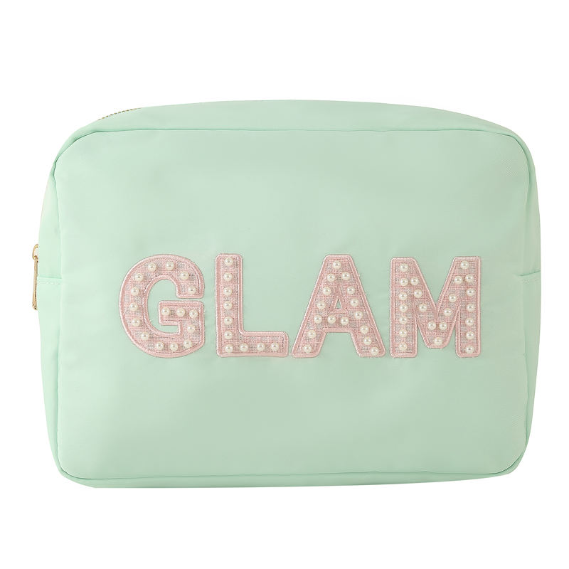Sac en Nylon à faire soi-même avec des patchs de lettres Chenille, trousse de maquillage, cadeau de noël, sacs à cosmétiques pour le voyage, livraison rapide