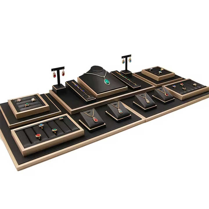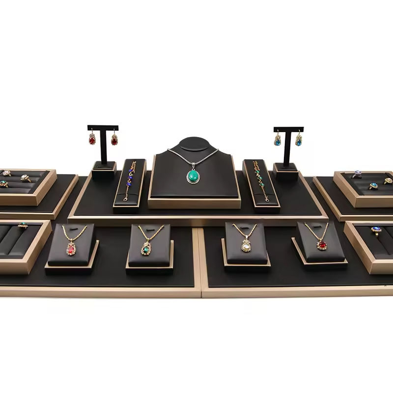 Présentoir à bijoux personnalisable en cuir pour bracelets, colliers et bagues – Ensemble d'exposition de bijoux