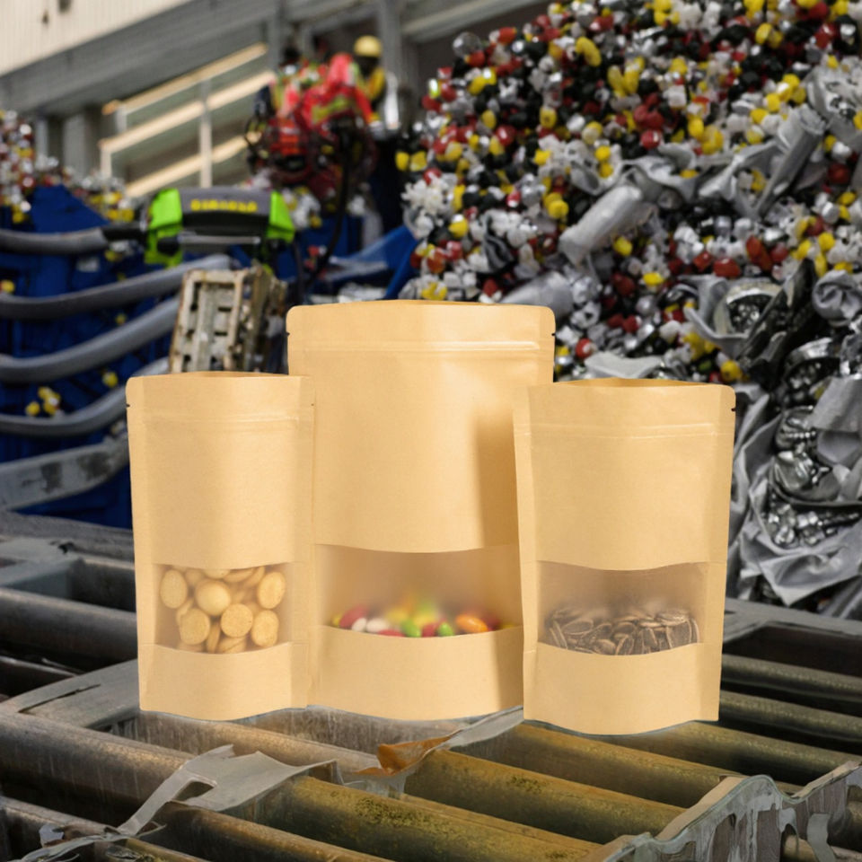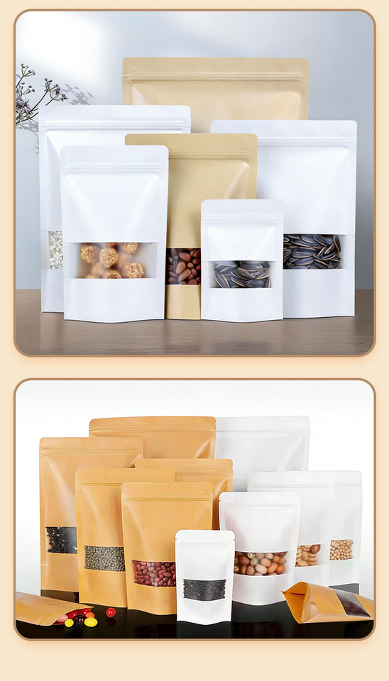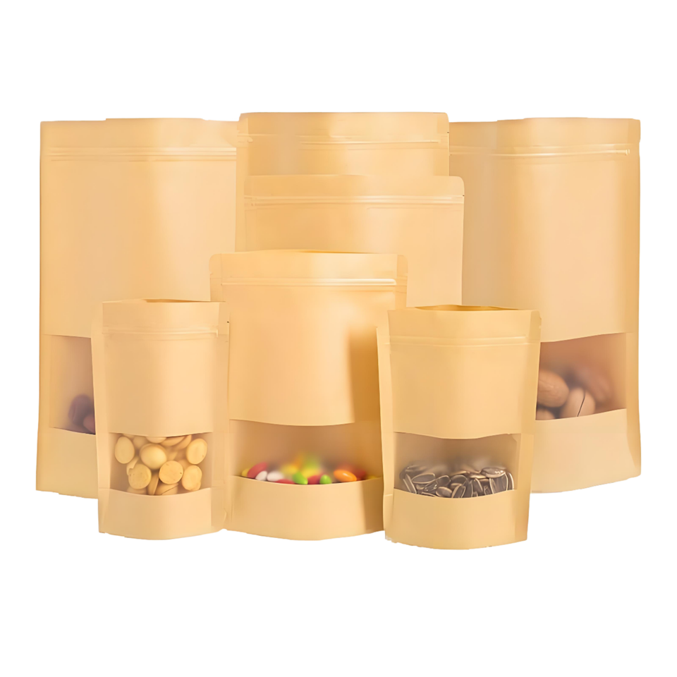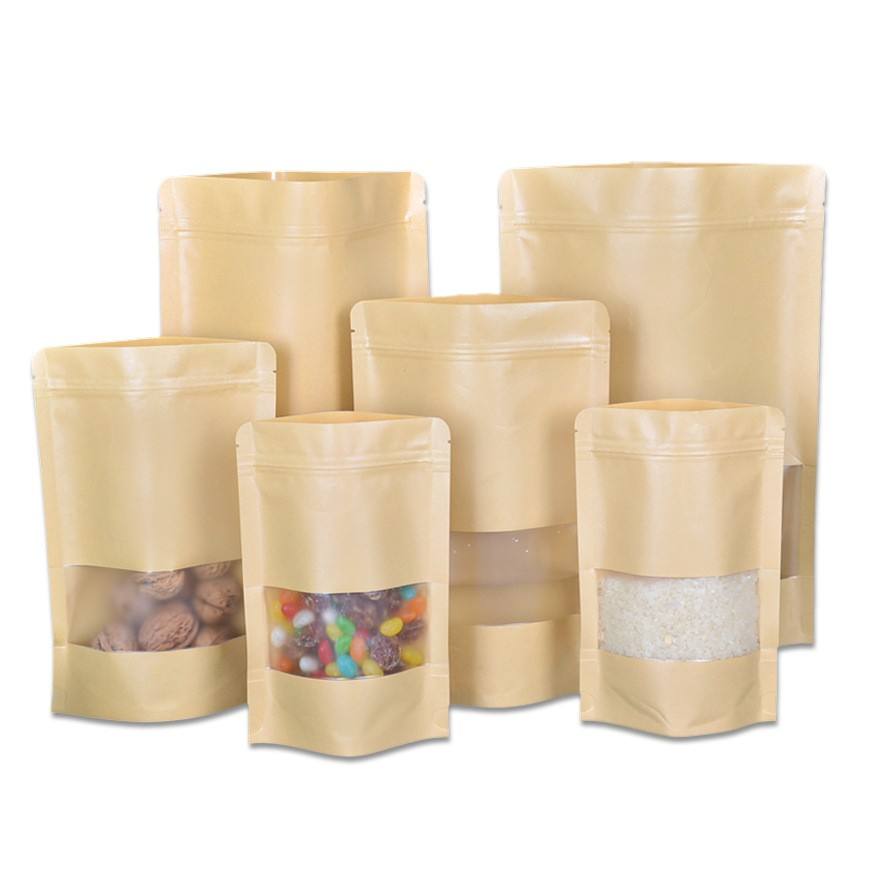 Sachet Doypack refermable en papier kraft avec fenêtre et fermeture éclair pour emballage de thé