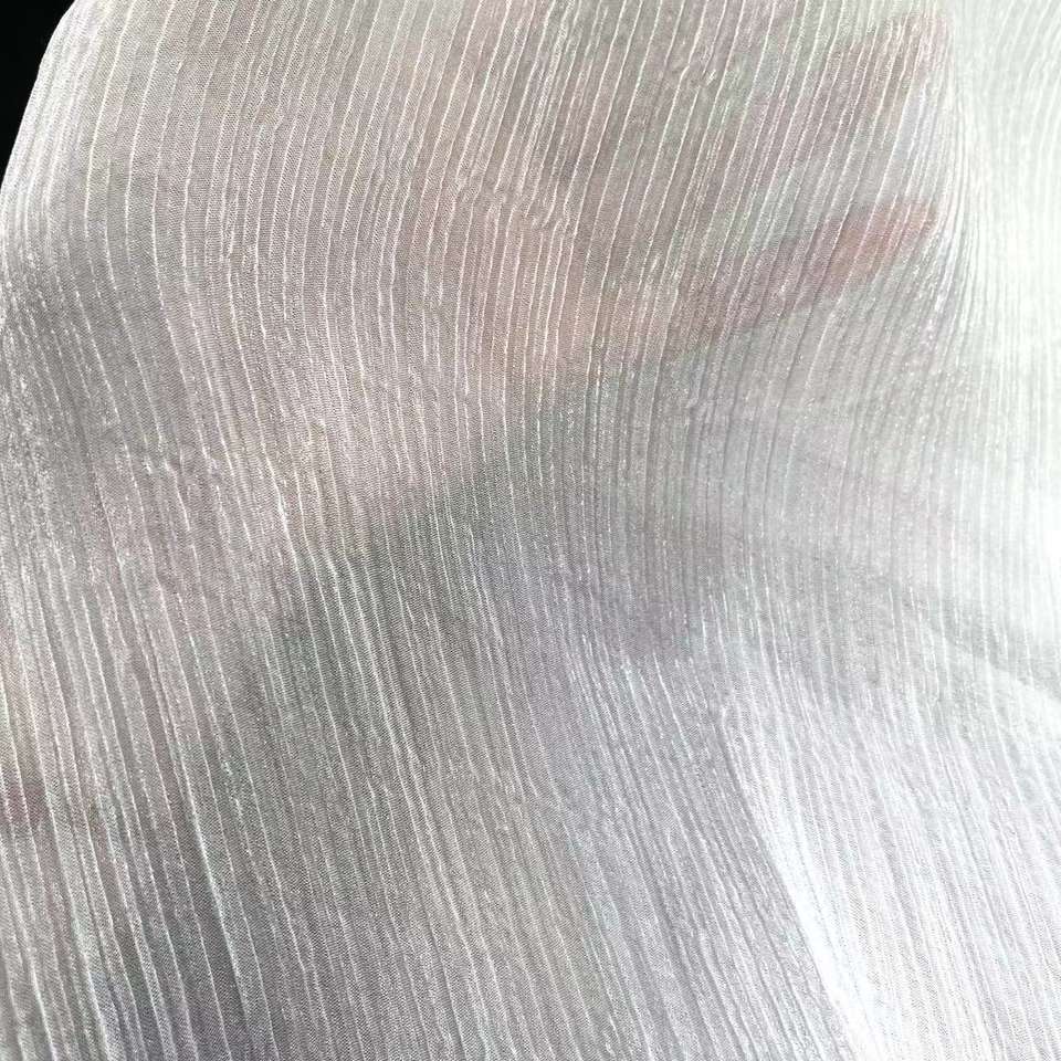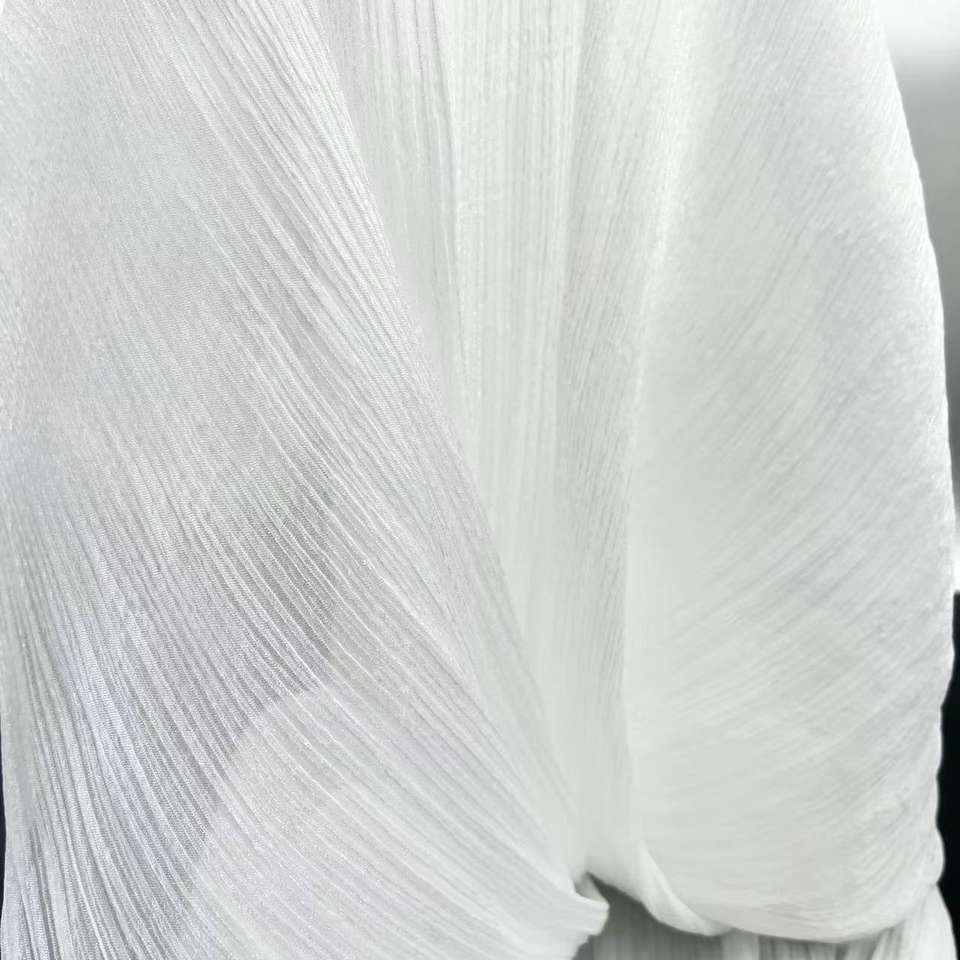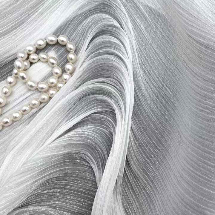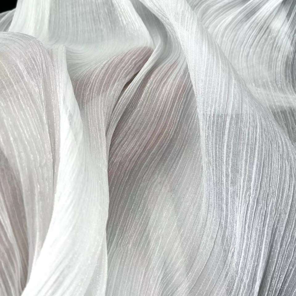 Stock de crêpe brillant scintillant tissu de mousseline de soie de polyester recyclé transparent plissé tulle voile vêtement de mariage