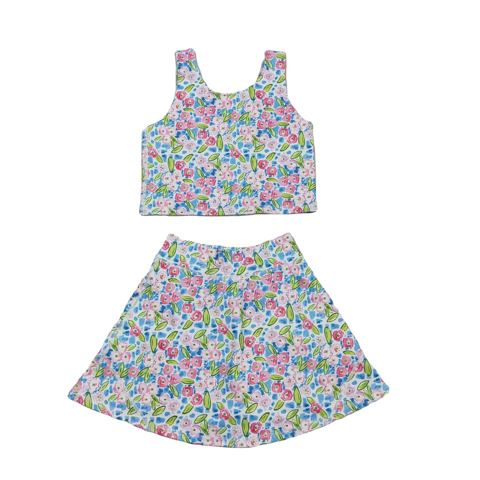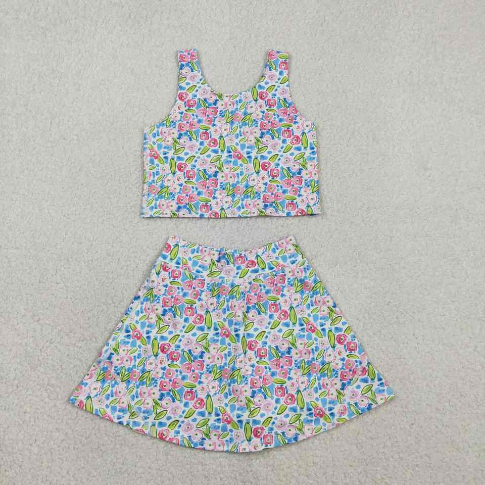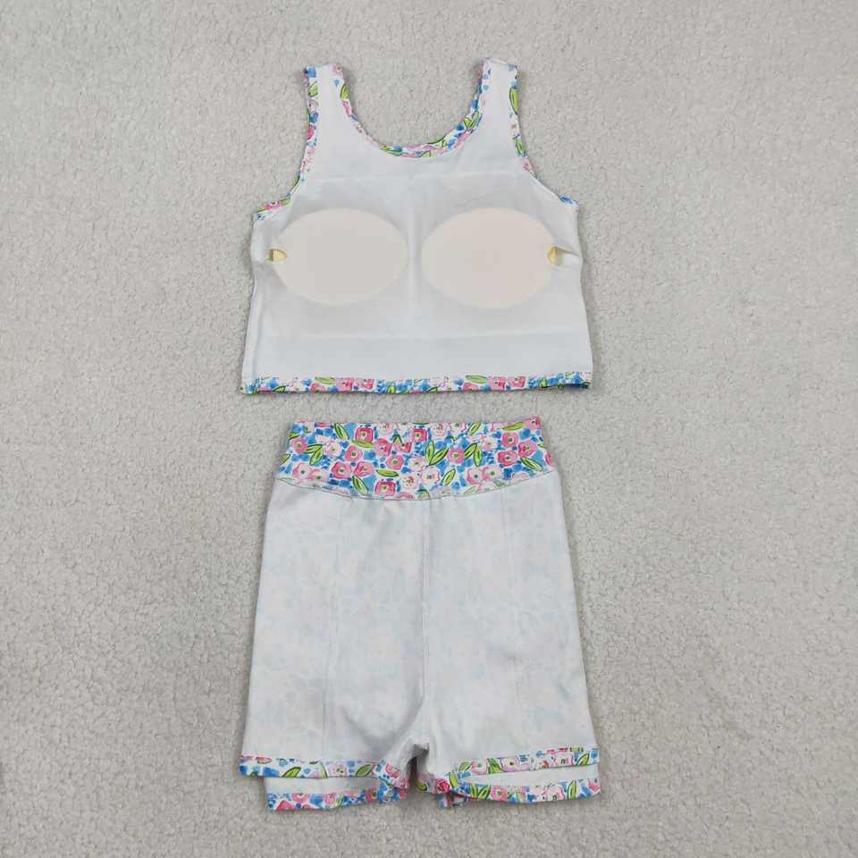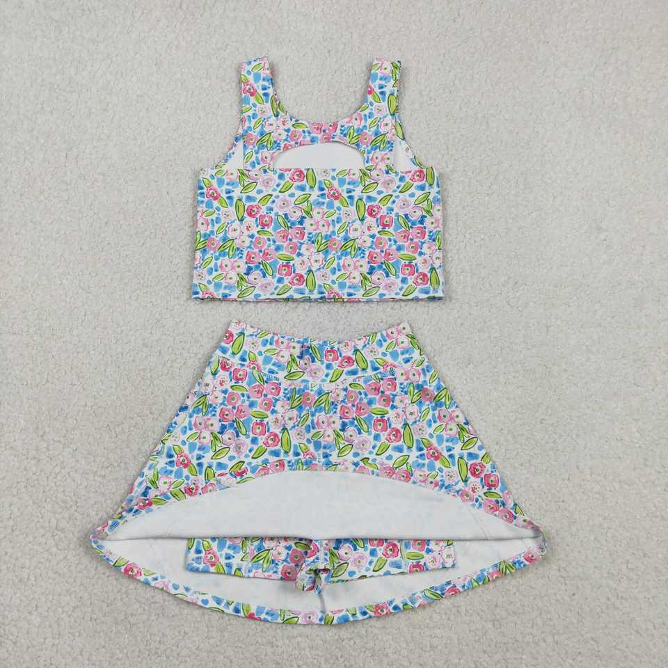 Nouvel ensemble de vêtements pour petite fille, imprimé floral printemps-automne, avec gilet, chemise, jupe et short doublé, pour le yoga, le sport et les activités, en coton et élasthanne