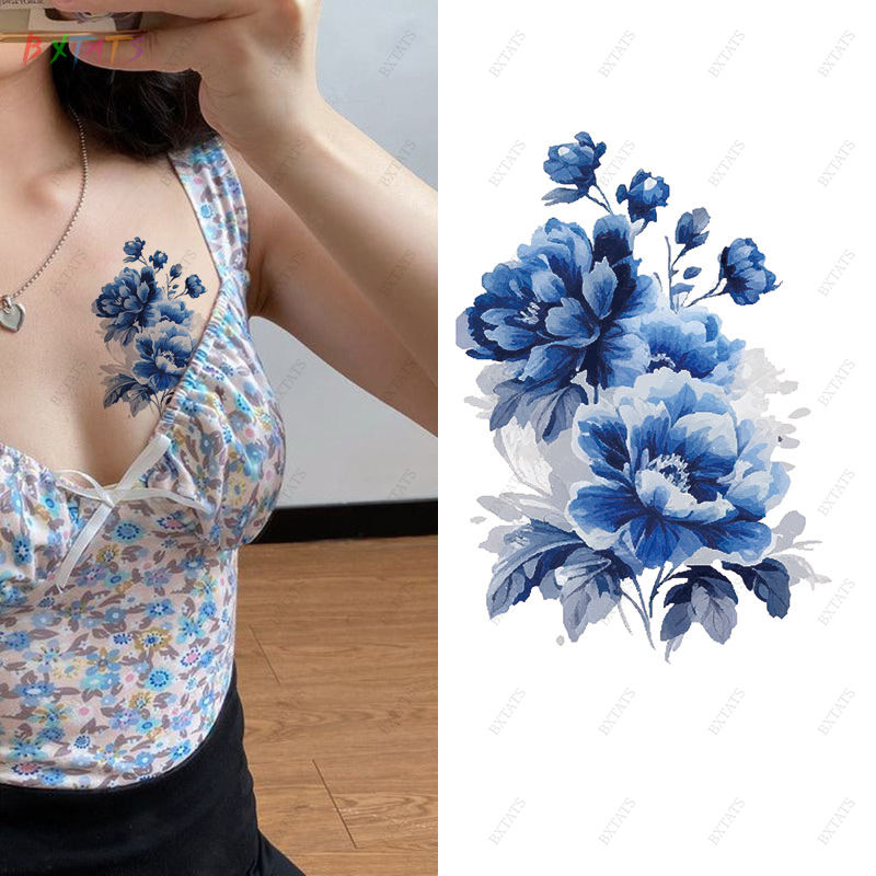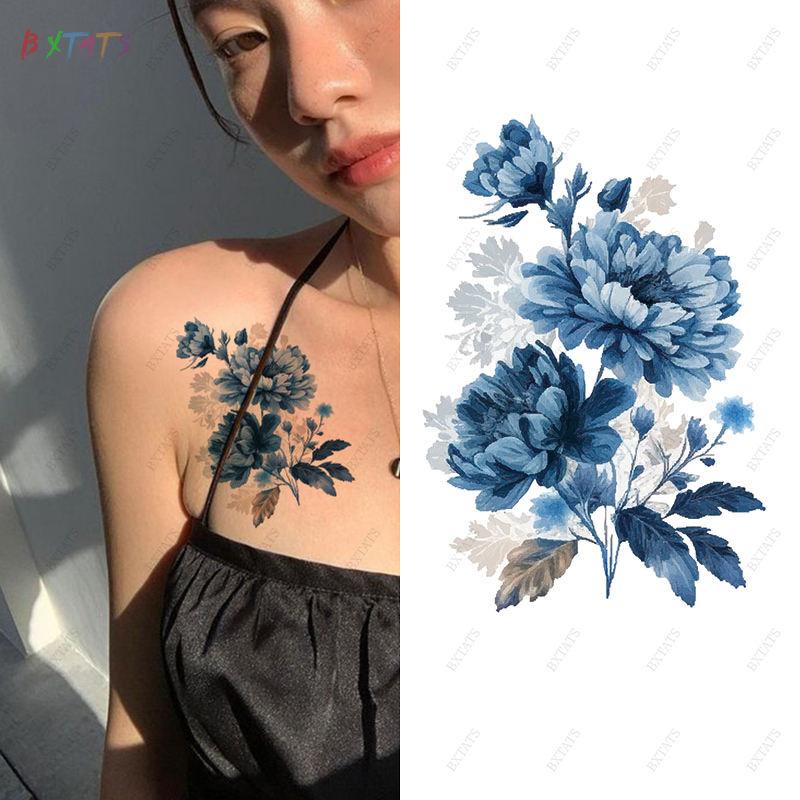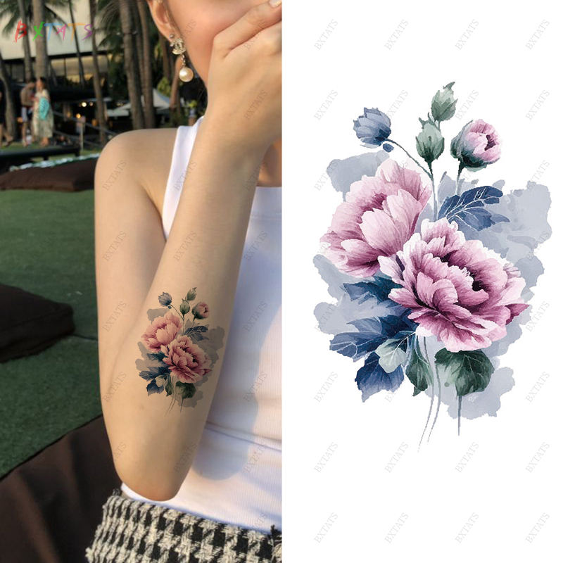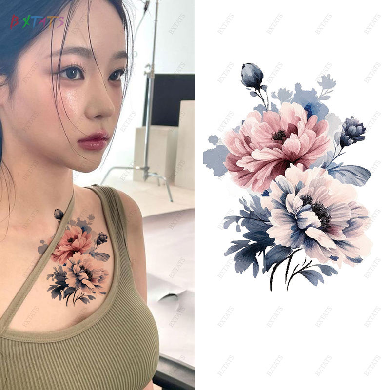Tatouage temporaire coloré imperméable à l'eau, transfert de tatouage floral sur la poitrine, le bras, tatouage temporaire durable de 5 à 7 jours, autocollant de tatouage