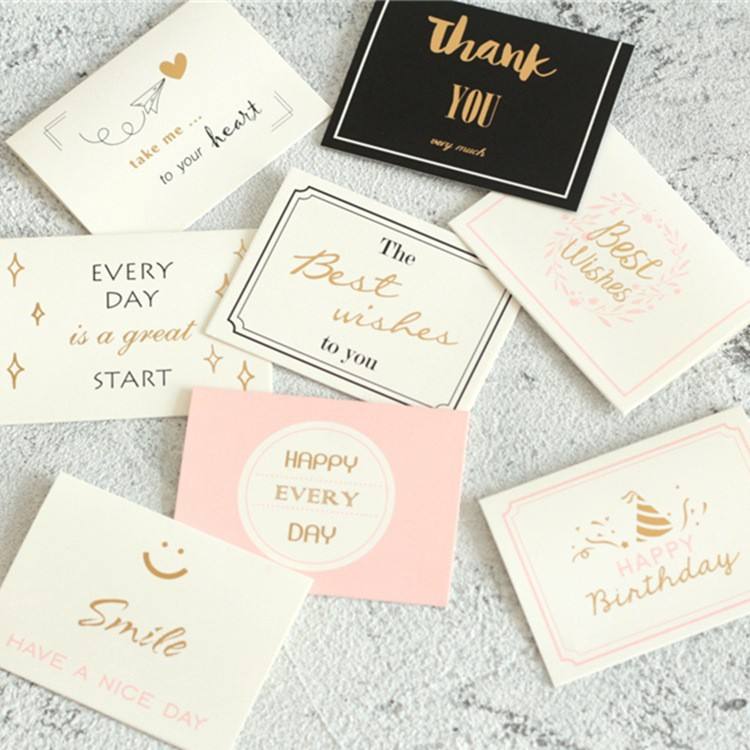 Cartes de vœux blanches, stock ou design personnalisé, feuille d'or, happy birthday, votre carte et votre enveloppe